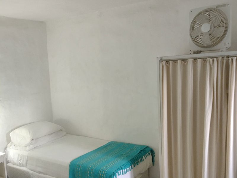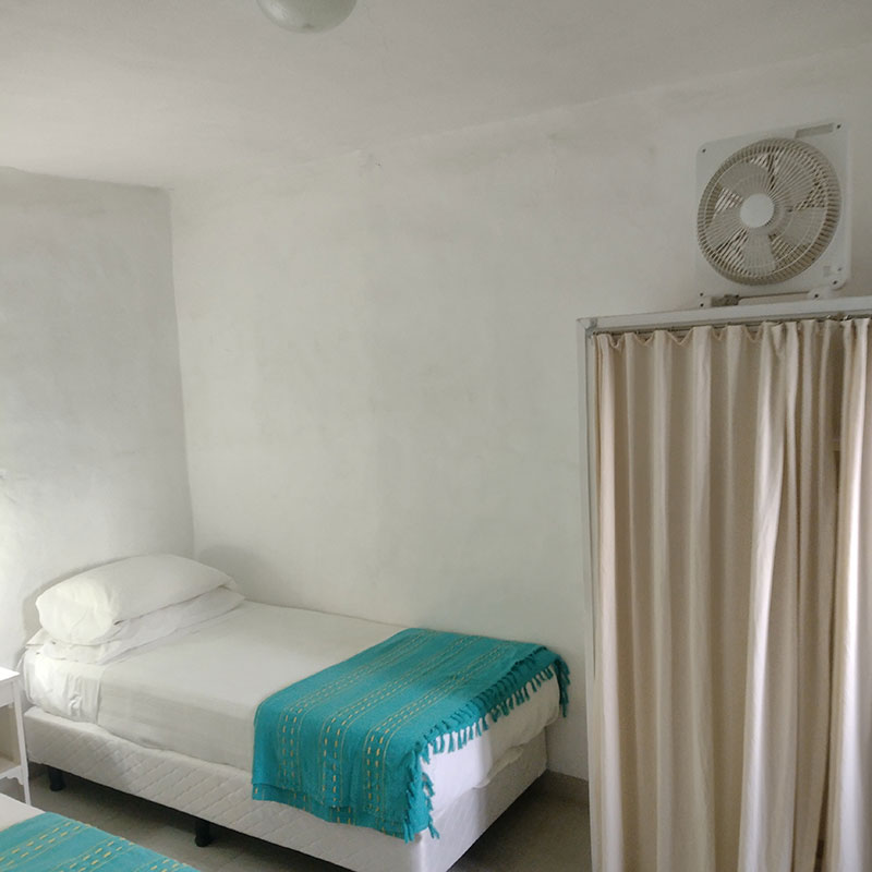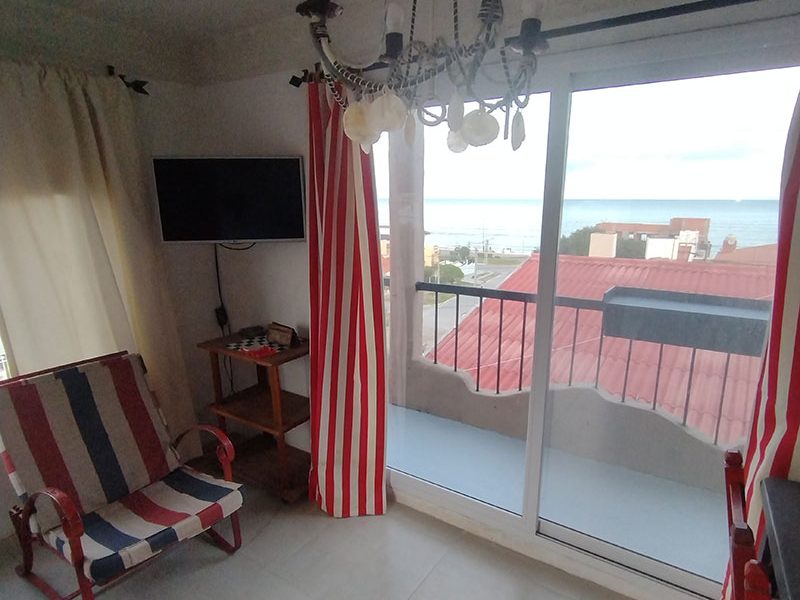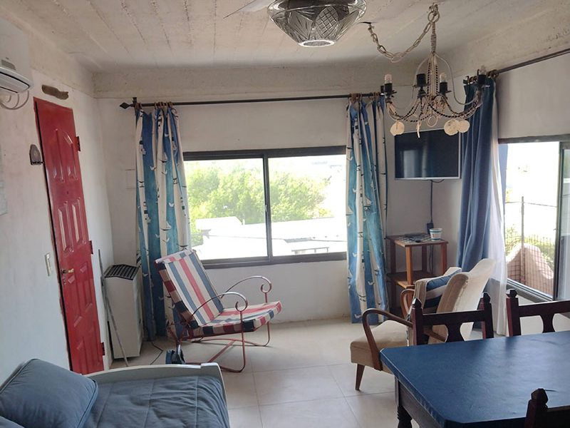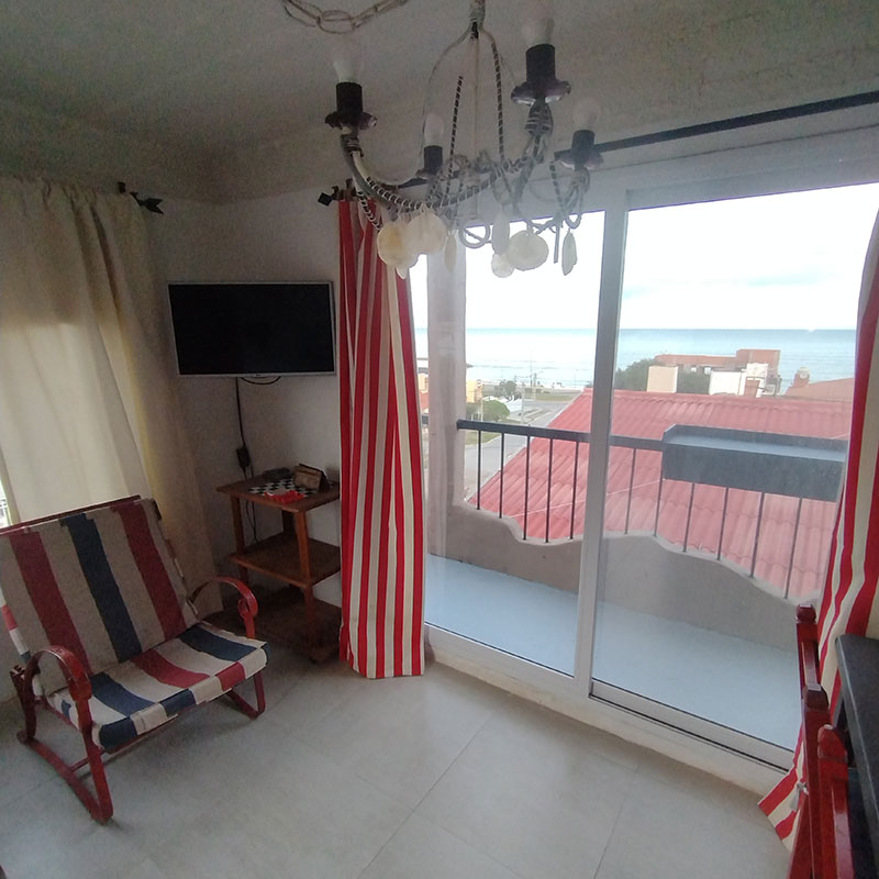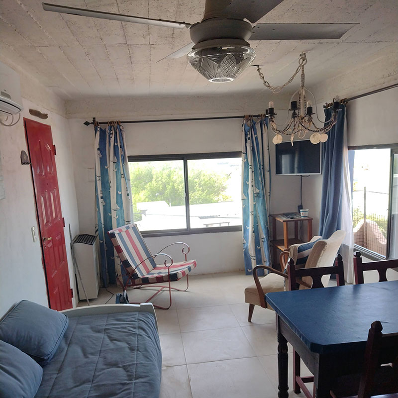 El departamento cuenta con cocina y living integrados, totalmente equipados con batería de cocina, tostadora, licuadora, microondas y heladera con congelador.