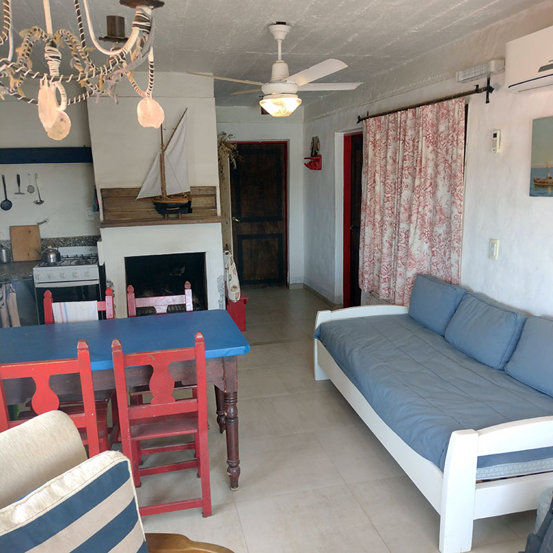 - El living-comedor posee aire acondicionado, mientras que las habitaciones están equipadas con ventiladores de techo. Todo el espacio está ambientado y decorado en un cálido estilo rústico.