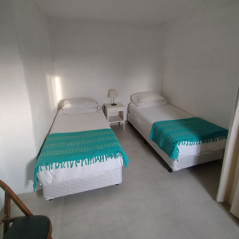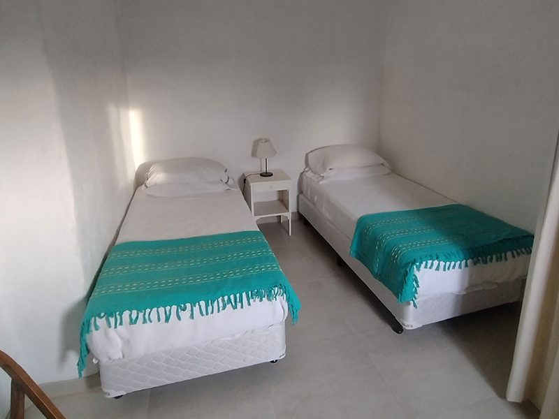 - Dispone de dos dormitorios: uno con somier de dos plazas y otro con dos somier individuales, además de un cómodo sofá cama en el living.